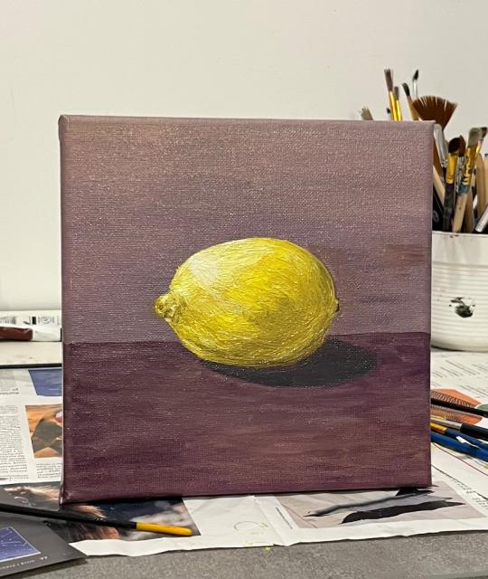 Niepozorny format – wielka energia Ten ręcznie malowany obraz olejny 20×20 cm przedstawia cytrynę, która jest więcej niż tylko owocem: 🍋 symbol świeżości, energii i życia, 🍋 odrobina słońca na Twojej ścianie, 🍋 minimalistyczna forma, która pasuje zarówno do nowoczesnego salonu, jak i przytulnej kuchni. Technika: olej na płótnie Wymiary: 20 x 20 cm